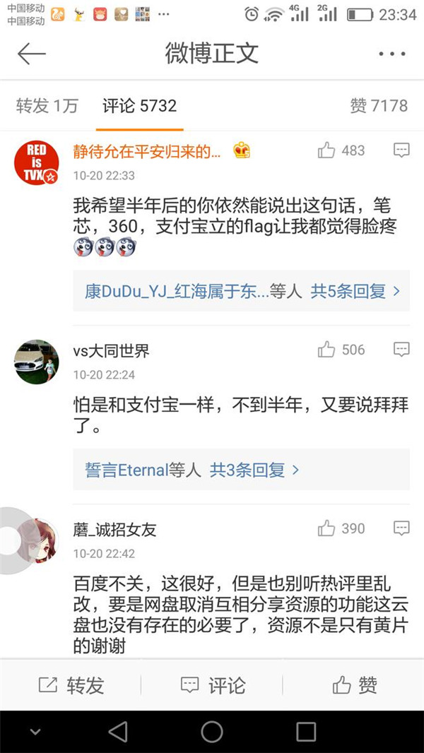 雖然目前百度云盤已經(jīng)發(fā)出聲明,但并沒有贏網(wǎng)友們的叫好,甚至有很多網(wǎng)友質(zhì)疑其真實性。有網(wǎng)友表示要截圖留日后打臉!